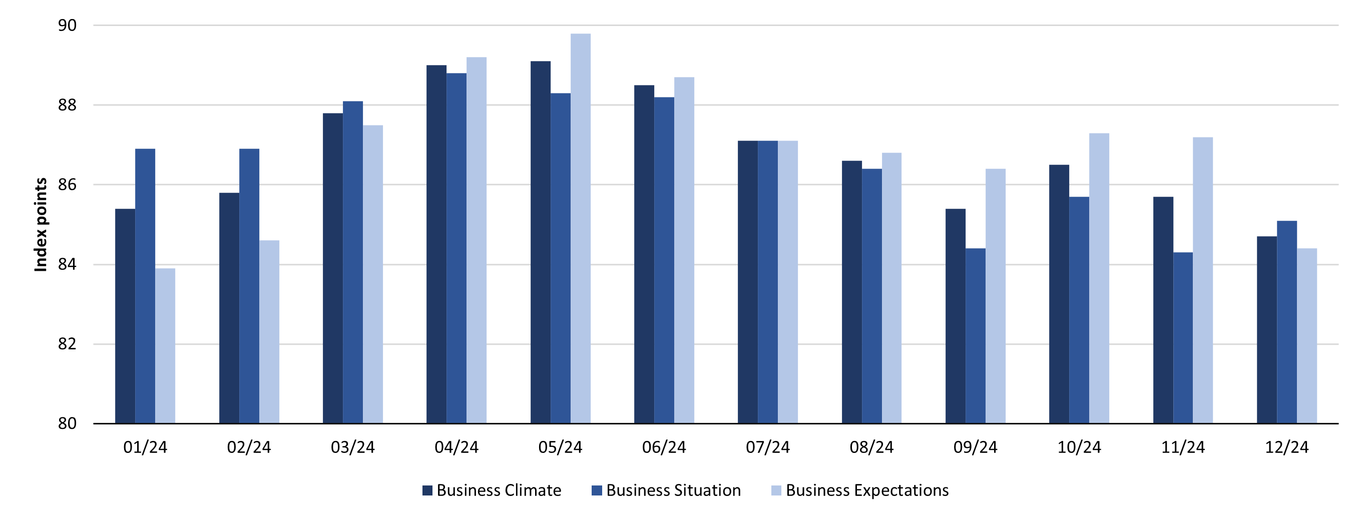 Figure 2: Business Climate, Business Situation, and Expectations for Germany based on the Ifo Institute for the Year 2024